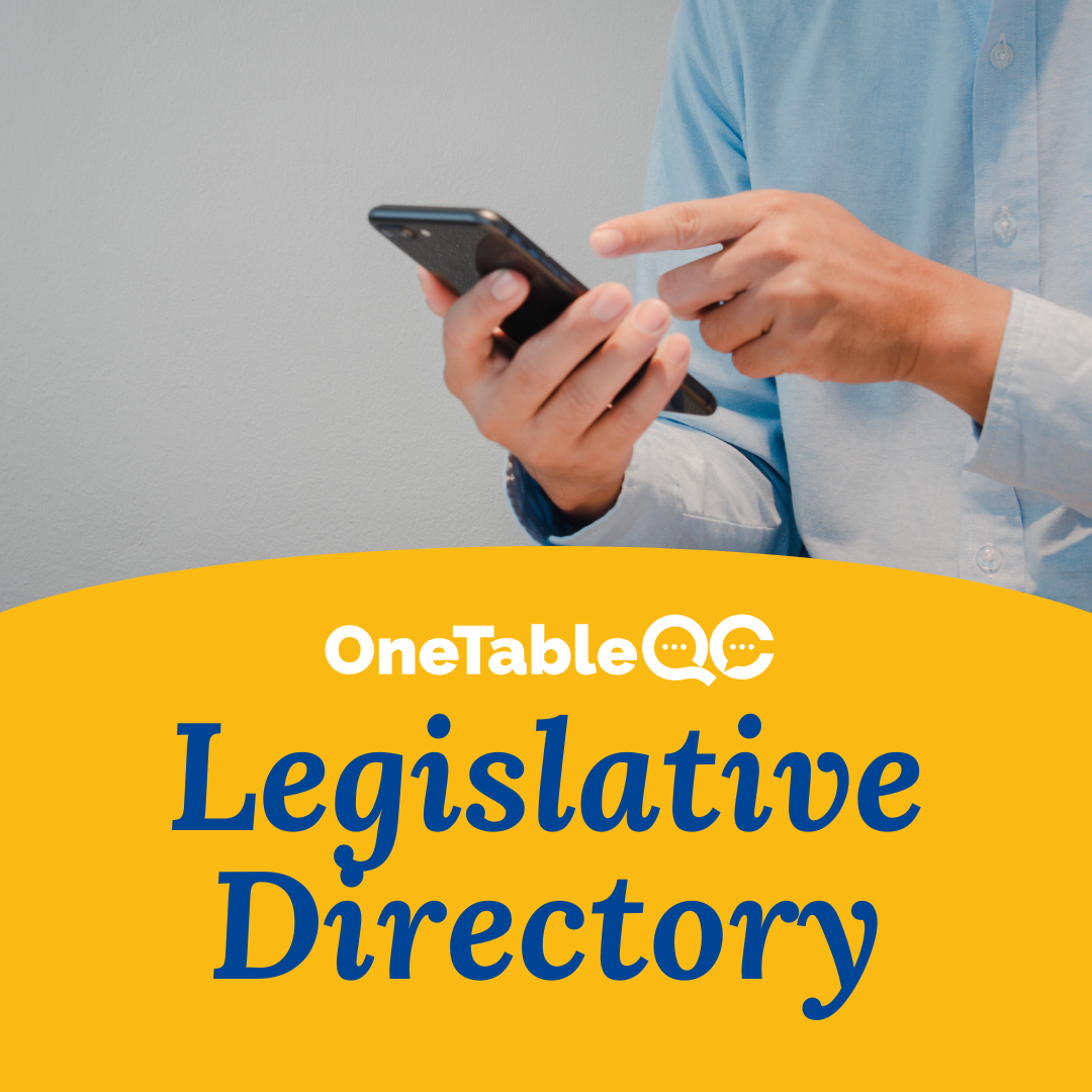 Find your representative’s contact information in the OneTable QC Legislative Directory.